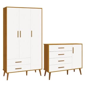 Dimensões: Tamanho do Guarda-Roupa (L x A x P): 112 x 205 x 41 cm Tamanho da Cômoda (L x A x P): 113 x 97 x 41 cm