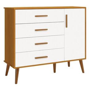 Cômoda Infantil Isis 1 Porta e 4 Gavetas - Reller Móveis - Estrutura 100% MDF - Pintura UV atóxica - Acabamento fosco - 1 Porta - Dobradiças metálicas - 4 Gavetas - Corrediças telescópicas - Sistema anti-tombamento - Puxadores em madeira - Pés estilo retrô em madeira - Amplo espaço interno