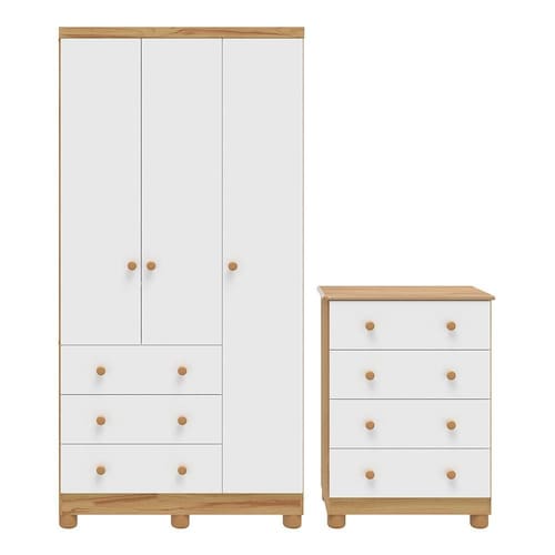 Jogo de Quarto Infantil Júnior Guarda Roupa 3 Portas e Cômoda 4 Gavetas - Móveis Peroba
