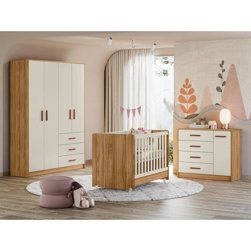 Características Estrutuda em MDF e MDP Puxadores em MDF revestido Corrediças telescópicas Berço com 2 regulagem de altura NÃO ACOMPANHA COLCHÃO Dimensões Dormitório Pérola Berço: Altura: 91,5 cm Largura: 132,6 cm Profundidade: 77 cm Comoda: Altura: 91,5 cm Largura: 110 cm Profundidade: 47 cm