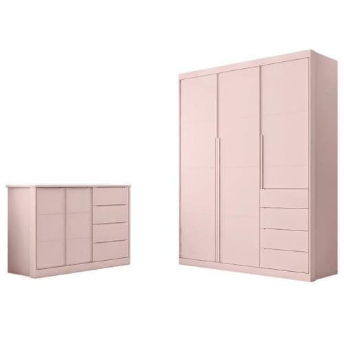 Jogo de Quarto Infantil Pietra com Guarda Roupa e Cômoda - PR Baby O Jogo de Quarto Pietra é delicado e cheio de detalhes. É composto por um guarda-roupa e uma cômoda que são peças muito importante para o quarto e para montar o visual perfeito, esse modelo é uma ótima opção. Ele possui compartimentos internos para roupas e objetos em geral ficarem organizados de maneira prática para o dia a dia.