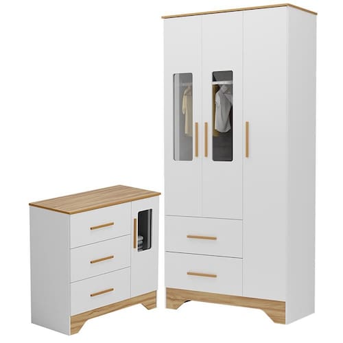 O Jogo de Quarto Infantil Popy Retrô Plus com Janelas é a escolha ideal para quem busca charme, funcionalidade e um toque retrô no ambiente do bebê. O guarda-roupa com 3 portas, sendo 2 com janelas PETG Cristal/Acrílico, e 2 gavetas com corrediças telescópicas, oferece excelente organização com cabideiro, prateleiras e amplo espaço interno. A cômoda, também com janela na porta e 3 gavetas espaçosas, complementa o conjunto com muita praticidade. Ambos os móveis contam com puxadores em MDF revestido e duas opções de rodapés (reto ou torneado), reforçando o visual clássico com estilo. Ideal para montar um quarto elegante e funcional.