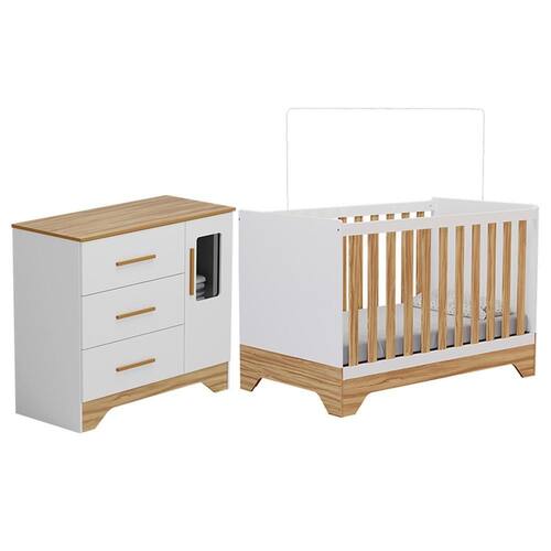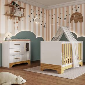 O Jogo de Quarto Infantil Popy Retrô Plus é perfeito para compor um ambiente funcional, seguro e com visual encantador. A cômoda conta com 1 porta com janela em PETG Cristal/Acrílico, 3 gavetas com corrediças telescópicas, prateleira interna e puxadores em MDF revestido, oferecendo amplo espaço para organizar as roupinhas e acessórios do bebê. Com duas opções de rodapés torneado ou reto você pode personalizar o estilo do móvel de acordo com sua preferência. Já o berço Popy Retrô 3 em 1 acompanha o crescimento da criança, podendo ser transformado em mini cama ou mini sofá. Certificado pelo INMETRO, possui estrutura em MDF com pintura UV atóxica, bordas arredondadas e suporte mosquiteiro, garantindo segurança e conforto. Um conjunto charmoso e versátil para o quarto do seu bebê.