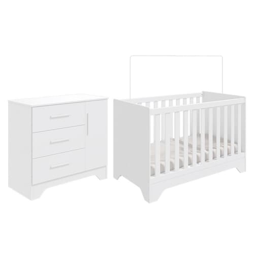 O Jogo de Quarto Infantil Popy Retrô Plus é perfeito para compor um ambiente funcional, seguro e com visual encantador. A cômoda conta com 1 porta, 3 gavetas com corrediças telescópicas, prateleira interna e puxadores em MDF revestido, oferecendo amplo espaço para organizar as roupinhas e acessórios do bebê. Com duas opções de rodapés torneado ou reto você pode personalizar o estilo do móvel de acordo com sua preferência. Já o berço Popy Retrô 3 em 1 acompanha o crescimento da criança, podendo ser transformado em mini cama ou mini sofá. Certificado pelo INMETRO, possui estrutura em MDF com pintura UV atóxica, bordas arredondadas e suporte mosquiteiro, garantindo segurança e conforto. Um conjunto charmoso e versátil para o quarto do seu bebê.