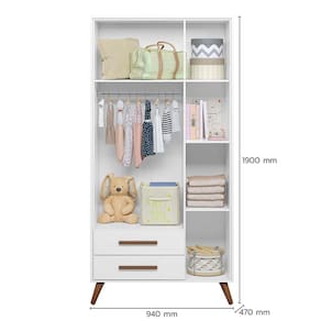 Dormitório Infantil Q Encanto Retrô Guarda Roupa, Cômoda e Berço - Qmovi O Dormitório Infantil Q Encanto Retrô é composto por um guarda-roupa, uma cômoda e um berço. O Guarda Roupa Infantil Q Encanto Retrô, foi projetado especialmente para quem precisa de um móvel espaçoso e funcional para o quarto do filho. A Cômoda Infantil Q Encanto Retrô possui quatro gavetas e uma repartição de sapateira, proporcionando mais organização para vestuário e demais objetos. Seu sistema antitombamento, garante segurança e evita acidentes. E o Berço Mini Cama Q Encanto Retrô, foi desenvolvido com todo o cuidado para garantir a segurança e conforto do bebê. O berço ainda pode ser montado como mini cama, para acompanhar o crescimento da criança. Guarda Roupa Infantil Q Encanto Retrô 3 Portas e 2 Gavetas - Qmovi • Estrutura MDP • Pintura UV • 3 Portas • Dobradiças metálicas • 6 Prateleiras • 2 Gavetas • Corrediças metálicas • Sistema antitombamento • Puxadores em MDF • Pés torneados em madeira de eucalipto design retrô • Amplo espaço interno Cômoda Infantil Q Encanto Retrô 1 Porta e 4 Gavetas - Qmovi • Estrutura MDP • Pintura UV • 1 Porta • Dobradiças metálicas • 1 Prateleira interna • 4 Gavetas • Corrediças metálicas • Sistema antitombamento • Puxadores em MDF • Pés torneados em madeira de eucalipto design retrô • Amplo espaço interno Berço Mini Cama Q Encanto Retrô - Qmovi • Estrutura em MDP • Pintura UV • Certificado compulsório do INMETRO 006 495/2021 • Padrão americano • Estrado em MDF de 6mm e travessas em MDF • Estrado regulável em três alturas: 1ª: 35,5 cm, 2ª: 48,3 cm, 3ª: 61,1 cm (altura do estrado em relação a borda superior da grade) • Pode ser transformado em mini cama • Grades fixas feitas em MDF • Acompanha suporte para mosquiteiro • Pés torneados em madeira de eucalipto design retrô • Colchão recomendado 70 x 130 cm • Não acompanha colchão Dimensões: Tamanho do Guarda-Roupa (L x A x P): 94 x 190 x 47 cm Tamanho da Cômoda (L x A x P): 94 x 84 x 42 cm Tamanho do Berço (L x A x P): 74 x 92 x 133 cm