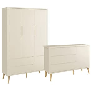 Jogo de Quarto Infantil Theo Guarda Roupa 3 Portas e Cômoda com Pés Madeira Natural - Reller Móveis - Bege