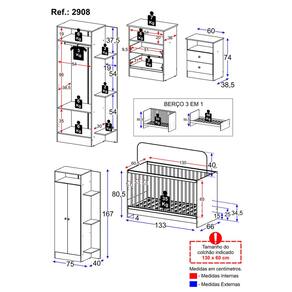 Berço - Altura: 80,5cm | Largura: 133cm | Profundidade: 66cm