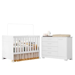 O conjunto perfeito para unir praticidade e conforto no quarto do bebê. A Cômoda Zaki oferece organização com 1 porta e 4 gavetas amplas, sistema antitombamento e corrediças telescópicas que garantem suavidade no uso diário. Produzida em MDF com pintura UV atóxica, conta ainda com pés em PVC para maior durabilidade. O Berço Katatau Flex acompanha o crescimento da criança, transformando-se em mini cama ou sofázinho. Com padrão americano, possui 3 regulagens de altura do estrado, rodízios (2 com trava), cantos arredondados e suporte para mosquiteiro. Certificado pelo INMETRO, garante segurança e tranquilidade para os pais.