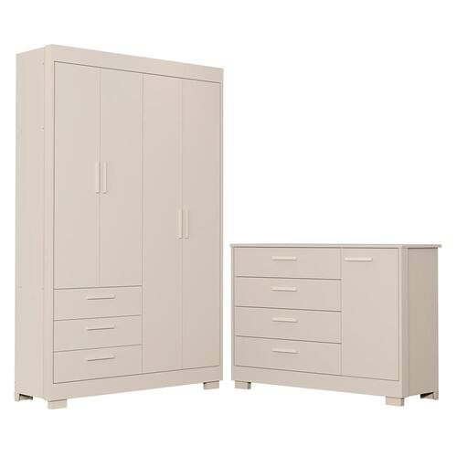 O Jogo de Quarto Infantil Zaki combina design moderno e funcionalidade, ideal para acompanhar o crescimento do seu pequeno com estilo e organização. Produzido em MDF com pintura UV atóxica, o guarda-roupa possui 4 portas, 3 gavetas com corrediças telescópicas, cabideiro metálico, puxadores em MDF e pés em PVC. Já a cômoda traz 1 porta, 4 gavetas espaçosas, puxadores em MDF, pés em PVC e sistema antitombamento para garantir a segurança da criança. Um conjunto completo, durável e seguro para o dia a dia da família.