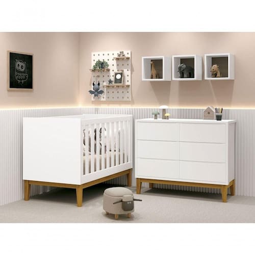 Jogo De Quarto Para Bebê Classic New Branco Fosco Com Madeira - Moveisaqui