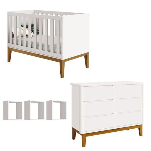 Indispensável para o quartinho do seu baby, o Jogo de Quarto Bebê Classic New - RELLER, apresenta os pés em madeira maciça em um modelo que contribui para o ar retrô, todas as suas peças possuem um desing clean que se adequa a vários estilos de decoração. Contempla um Berço que transmite personalidade e delicadeza, podendo se transformar em mini cama futuramente, uma Cômoda com seis gavetas onde duas contém divisórias, para uma perfeita organização das roupinhas e itens do seu bebê. Além de um kit de nichos, que proporciona apoio e suporte dentro do quartinho, e também contribue para a exposição de objetos decorativos.