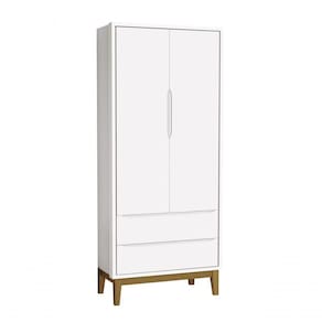 O Jogo de Quarto Bebê 2PTs Classic New - MóveisAqui, é ideal para o quartinho do seu baby. Seus pés em madeira maciça proporcionam o ar retrô, as peças detém um desing clean que harmonizam com vários estilos de decoração. Contempla um Berço que exala personalidade e delicadeza, podendo transformar-se em mini cama futuramente, uma Cômoda Gaveteiro com três gavetas e um Roupeiro de duas portas e duas gavetas, amplos, espaçosos e com divisórias internas, são perfeitos para a organização das roupinhas e itens do seu bebê.