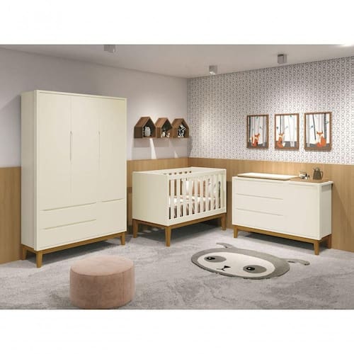 Jogo De Quarto Para Bebê Completo 3 Portas Classic New Areia Fosco Com Madeira - Moveisaqui