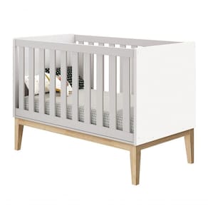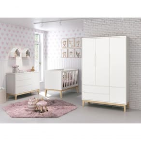Jogo De Quarto Para Bebê Completo 3 Portas Classic New Branco Fosco Com Natural - Reller