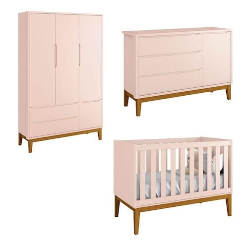 Jogo De Quarto Para Bebê Completo 3 Portas Classic New Rosa Fosco Com Madeira - Reller