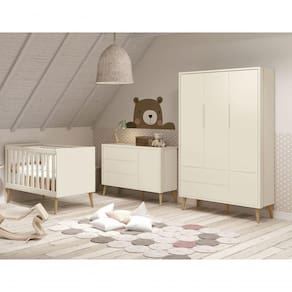 Jogo De Quarto Para Bebê Completo 3 Portas Théo New Areia Fosco Com Natural - Reller