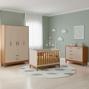 Jogo De Quarto Para Bebe Completo 4 Portas Flip Areia Com Savana O Conjunto de Quarto de Bebê Flip 4P é ideal para quem busca praticidade, e estilo na composição do quarto infantil.Composto por Roupeiro 4 Portas, Cômoda Sapateira e Berço, o conjunto reúne móveis funcionais, resistentes e com design moderno, pensados para facilitar o dia a dia dos pais e garantir aconchego ao bebê.Os móveis apresentam frentes usinadas, sem puxadores aparentes, criando um visual clean e sofisticado. Os pés em madeira reforçam a estrutura e adicionam um toque natural à decoração.Medidas de cada produto:Roupeiro Flip 4 Portas:Altura: 204 cmLargura: 147 cmProfundidade: 44 cmCômoda Sapateira Flip:Altura: 96 cmLargura: 122 cmProfundidade: 44 cmBerço Flip:Altura: 90 cmLargura: 133 cmProfundidade: 75 cmObservações:- Conjunto completo com móveis essenciais para o quarto do bebê- Estrutura 100% em MDF, resistente e durável- Frentes usinadas, sem puxadores aparentes- Pés em madeira, firmes e elegantes- Design moderno, clean e fácil de harmonizar com diferentes estilos Marca: Não Informado