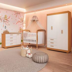 Jogo De Quarto Para Bebe Danny Zaki Branco Com Savana - Moveisaqui