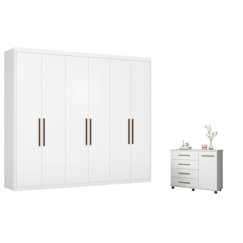 Cor Predominante: Branco | Cores do Produto (FILTRO DE CORES): Branco | Largura do Produto (cm): 267 | Instruções/Cuidados: Limpar com pano macio e seco, não utilizar produtos abrasivos. | Estado de Origem: PR | Altura do produto (cm): 228 | Material para Filtro: MDP | Descrição do Tamanho: Altura: 228 cm, Largura: 267 cm, Profundidade 55 cm | Comprimento do Produto (cm): 55 | Altura do Produto com Embalagem (cm): 51 | Largura Produto Com Embalagem (cm): 56 | Comprimento Produto Com Embalagem (cm): 256 | Peso Produto Com Embalagem (Kg): 225,6 | Produto precisa de Montagem?: Sim, a montagem é simples mas sugerimos a contratação do nosso serviço de montagem (para os CEPs em que o serviço está disponível) ou de algum experiente de sua preferência | Material Principal: MDP | Conteúdo da Embalagem: 01 Guarda Roupa, 01 Cômoda | Peso do Produto (Kg): 224,8 | PESO DO PRODUTO (KG): 225,6 | COMPRIMENTO PRODUTO COM EMBALAGEM (CM): 256 | ALTURA DO PRODUTO COM EMBALAGEM (CM): 51 | CORES DO PRODUTO (FILTRO DE CORES): Branco | LARGURA PRODUTO COM EMBALAGEM (CM): 56 | PESO PRODUTO COM EMBALAGEM (KG): 225,6 | COR PREDOMINANTE: Branco