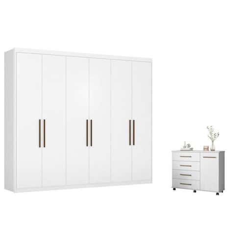 Este conjunto une design e funcionalidade, para deixar seu quarto ainda mais elegante e organizado!