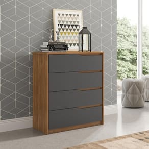 A Cômoda possui 4 gavetas, com profundidades ideais aliadas à beleza do seu design, enriquecidos pelo detalhe curvo nas frentes de gaveta.