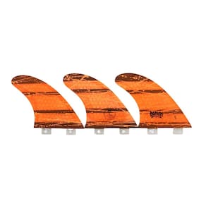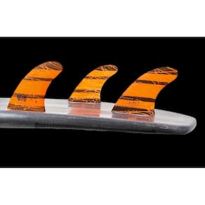 Quilha de perfil grande. Large Quilhas para um surf veloz e com mais controle, possui angulação acentuada que dá mais firmeza na hora das curvas, jogando mais agua nas manobras. O double foil na borda, característico desse modelo traz estabilidade enquanto o inside foil gera velocidade, projetando o surfista na onda.