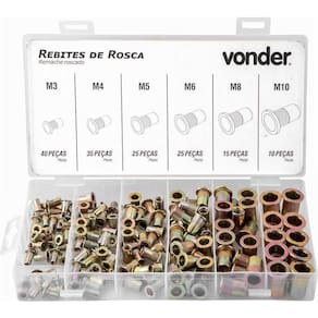 Jogo de rebites de rosca M3 a M10 com 150 peças VONDER