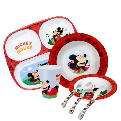 Disponível nos personagens Princesas Disney, Minnie Mouse, Mickey Mouse e Stitch, este conjunto é ideal para tornar as refeições mais alegres e estimular a autonomia dos pequenos. O kit acompanha peças essenciais para servir refeições completas, incluindo prato com divisórias, prato fundo, bowl, copo e talheres infantis com cabos personalizados.