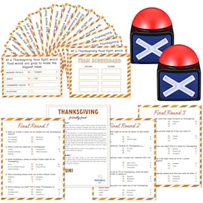 Características: Eleve suas reuniões de férias com nosso jogo de ação de graças para a família! O jogo apresenta regras abertas para um jogo suave e inclui duas campainhas para manter as coisas organizadas. Um papel de anfitrião dedicado melhora a interação, enquanto os gráficos vibrantes o tornam uma escolha de destaque para o Natal. Tamanho: A carta de introdução do jogo e a carta redonda final: 15 x 10 cm O cartão de pontuação e o cartão de perguntas: 17,8 x 12,7 cm A embalagem inclui: 1 x manual de instruções (sem garantia de versão em português). 2 cartões de pontuação. 12 cartões de perguntas. 3 cartas de jogo finais rápidas. 2 buzzers de resposta (pilhas não incluídas) Observações: Medição manual, considere pequenos erros no tamanho. A cor pode existir uma pequena diferença devido a diferentes telas. Nosso produto é adequado para pessoas com mais de 14 anos de idade. - Conjunto de jogo de ação de graças amigável: este jogo de cartas de ação de graças inclui 1 carta de instruções do jogo, 2 cartas de pontuação, 12 cartas de perguntas e 3 cartas de jogo final rápido, 18 cartas no total no pacote, tudo o que você precisa para um divertido teste de perguntas e respostas da festa de Ação de Graças está incluído - Campainhas de jogo: o jogo de rivalidade familiar para adultos com campainha tem regras abertas e instruções fáceis de seguir para garantir um jogo suave; as duas campainhas incluídas alimentadas por 4 baterias (não incluídas) e pressione as campainhas vermelhas para acender e fazer som, o que ajuda a manter o jogo organizado e divertido, tornando-o uma boa adição à sua noite de jogo em família - Material de qualidade: todas as cartas de jogo de feud são feitas de papel de qualidade para garantir uma impressão nítida, não é fácil de desbotar e reutilizável; cada cartão de jogo é cuidadosamente projetado, não apenas bonito, mas também pode adicionar uma atmosfera alegre às suas férias; e você pode aproveitar este jogo em sua festa de férias, se divertir com sua família e amigos e criar boas memórias - Tamanhos de cartas convenientes: com dimensões de cartas de 18 x 12 cm e 15 x 10 cm, este jogo de cartas de feudo de Natal oferece fácil de jogar, e instruções detalhadas do jogo estão incluídas no pacote - Artigos de festa: o jogo de rivalidade familiar de férias é adequado para atividades familiares, festa de ação de graças, festa de Natal, festa de ano novo e outras festas de fim de ano, o que trará diversão ilimitada para você e sua família ou grupos; e o design bonito e ampla variedade de aplicações também o tornam uma escolha versátil para melhorar qualquer festa ou noite de jogo em família