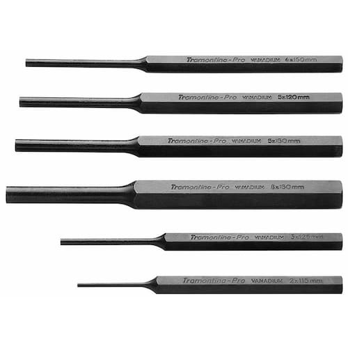 Utilizado para completar as operações de remoção de pinos ou rebites, os saca-pinos paralelos possuem durezas diferenciadas nas faces de golpe para garantir segurança e resistência em seu uso. Quem é PRO usa. Orientações Produzido em aço cromo molibdênio temperado.Têmpera por indução na ponta.Acabamento fosfatizado.DIN 6450. Estas ferramentas de impacto têm dureza diferenciada no gume de corte e na face que será golpeada.As ferramentas são submetidas a testes de aplicação para garantir que o processo de fabricação esteja dentro das especificações.A camada de fosfato mais a deposição de óleo aplicado na superfície das peças, garantem uma proteção excelente contra a corrosão.A variedade de tamanhos e formas de punções e talhadeiras, sempre assegura a ferramenta certa para cada aplicação.Utilizado para completar a operação de extração de um pino ou rebite, permitindo a expulsão total da peça. As ferramentas são produzidas e testadas conforme normas específicas. Observações Use óculos, luvas e outros equipamentos de proteção individual (EPIs) de acordo com a tarefa a ser executada. Utilize punções, saca-pinos e talhadeiras em superfícies ou componentes de dureza inferior a suas arestas de corte ou pontas. Descarte qualquer punção, saca-pino e talhadeira que apresente rachaduras, sinais de uso excessivo ou que tenham a face de impacto deformada. Golpeie as punções, saca-pinos e talhadeiras perpendicularmente às faces de impacto. Não use punções de centro para sacar pinos. Respeite as medidas e ângulos originais ao refazer a ponta dos punções ou gume de corte das talhadeiras. Armazene em local limpo e seco. Características Gerais EAN13 7891114050509 DUN14 17891114050506 NCM 8205.59.00 Peso Líquido 0,4800 kg. Peso Bruto 0,4800 kg. Metragem 0,001106 m³. Dimensões Embalagem (Compr. X Larg. X Alt.) 295x 150x 25 mm.