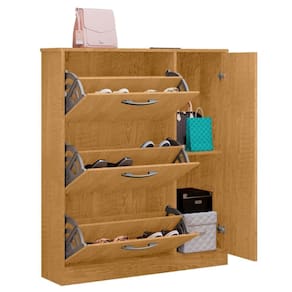 A sapateira é feita em MDP. Capacidade de calçados 18 pares, possui 4 portas sendo 3 delas articuladas.