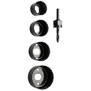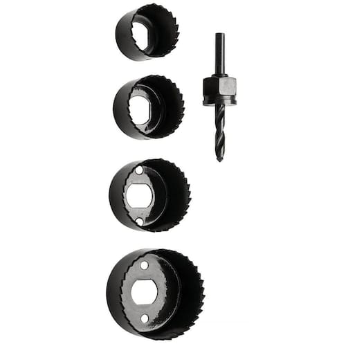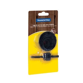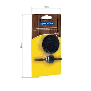 Para tornar os trabalhos em madeira mais precisos e versáteis, o Jogo de Serras Copo Tramontina para Madeira em Aço Especial com Dentes Travados 5 Peças é a escolha certa. São cinco peças produzidas com corpo em aço especial e dentes travados, elas auxiliam você nas exigências que encontrar na perfuração de madeiras. Orientações Corpo em aço especial com tempera total. Dentes travados. Broca piloto em aço especial. As ferramentas são submetidas a testes de aplicação prática para garantir sua resistência mecânica em uso intenso. Utilizada em trabalhos de perfuração em madeiras, compensados, MDF, plástico, etc. Não utilizar em metais. As ferramentas são produzidas e testadas conforme normas específicas.Conteúdo: 4 serras copos tamanhos 32 mm, 38 mm, 44 mm e 54 mm; 1 suporte para serra copo com broca piloto de 6 x 60 mm. Observações Use óculos, luvas e outros equipamentos de proteção de acordo com a tarefa a ser executada.Mantenha ferramentas de corte longe do alcance de crianças.Mantenha o fio de corte protegido, pois ele pode ferir o usuário.Não exceda a velocidade máxima indicada para cada tamanho de serra copo.Lubrifique a ferramenta sempre que possível durante o corte.Armazene em local limpo e seco. Características Gerais EAN13 7891114133578 DUN14 17891114133575 NCM 8202.99.90 Peso Líquido 0,1800 kg. Peso Bruto 0,2000 kg. Metragem 0,000216 m³. Dimensões Embalagem (Compr. X Larg. X Alt.) 90x 30x 80 mm. Dimensões Produto (Compr. X Larg. X Alt.) 170x 90x 30 mm.