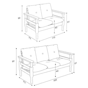 Sofá 2 lugares - Altura: 90cm | Largura: 115cm | Profundidade: 73cm