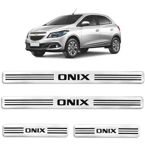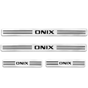 Jogo de Soleiras Chevrolet Onix na cor Prata para as Quatro Portas com Detalhes Modelo Original, Fabricado em Resina de Alta Qualidade e Brilho, Auto Colante.