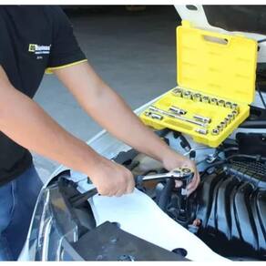 Fabricados em aço cromo vanádio com acabamento cromado. Acompanha maleta plástica para acomodação e transporte das peças. Indicado para sempre ter em mãos a ferramenta certa para qualquer ocasião. Catraca com cabo maciço e angulado, gerando assim melhor comodismo na pegada para um o aperto final.
