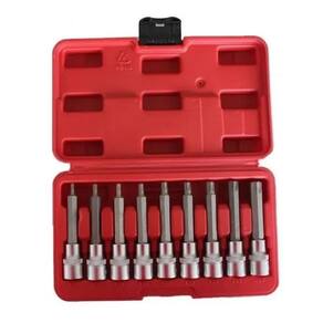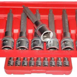 Jogo De Soquete Torx Macho Com 9 Peças Jogo de soquetes torx Fabricados em aço cromo vanádio Todos os soquetes possuem encaixe de 1/2 Comprimento: 100mm Ideal para aperto e desaperto de parafusos especiais, exemplo: Cabeçotes Acompanha estojo