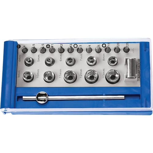 Um bom jogo de ferramentas precisa atender um princípio básico: a versatilidade. E para atender a essa necessidade nada melhor do que ter o Jogo de Soquetes e Acessórios Tramontina 24 Peças. Um jogo com peças de diversos tamanhos, oferece a você ponteiras cruzadas, chatas, hexagonais e ponta trafix para parafusos tork. Com tamanho pequeno, não irá ocupar espaço em sua caixa de ferramentas!