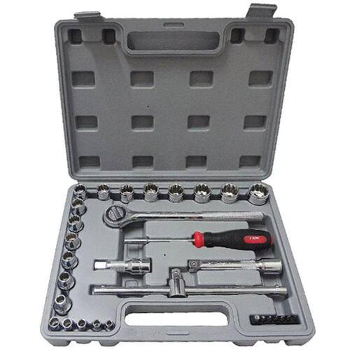 Jogo de Soquetes Estriados com 31 peças da Noll - 405,0001Fabricado em Cromo VanádioItens inclusos no jogo:01 Catraca Reversível com encaixe 1/2"01 Empunhadura para Bits01 Extensão Cabo T 10"02 Extensões de 3" e 5"14 Soquetes Estriados com Encaixe 1/2": 8mm, 10mm, 11mm, 12mm, 13mm, 14mm, 15mm, 16mm, 17mm, 18mm, 19mm, 21mm, 22mm, e 24mm05 Soquetes Estriados com encaixe 1/4": 5mm, 6mm, 7mm, 8mm, e 9mm06 Bits03 Fenda: 3mm, 4mm, e 5mm03 Fenda Cruzada: PH1, PH2, PH301 Bi Soquete ADEspecificações Técnicas:Marca: NollDimensões:Código: 405,0001