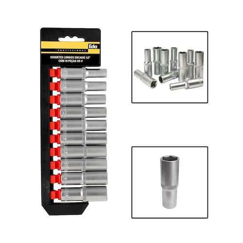 - 01 Jogo Se Soquetes Longos Com Encaixe De 1/2" 10 Peças (8, 10, 11, 12, 13, 14, 15, 16, 17 e 19 mm);
