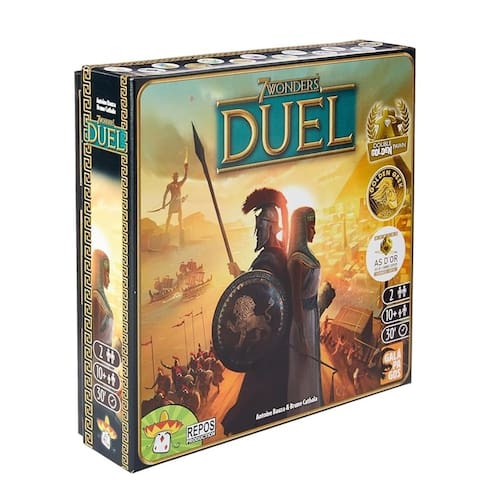 O sucesso de 7 Wonders foi tão estrondoso que ele recebeu uma variação para 2 jogadores. Em 7 Wonders Duel, você enfrentará um opontente a fim de levar sua civilização ao ápice. Atravessando três eras de desenvolvimento, você deverá produzir matérias primas, produtos manufaturados, criar comércios, construir esculturas e monumentos. Cada turno será um passo em direção à vitória.A cada Era, você reunirá cartas para construir a sua cidade, a cada carta uma nova edificação será erguida com vantagens ou produtos para que você use. Você também poderá construir as Maravilhas do mundo, apenas 7 serão permitidas e têm efeitos únicos e poderosos.