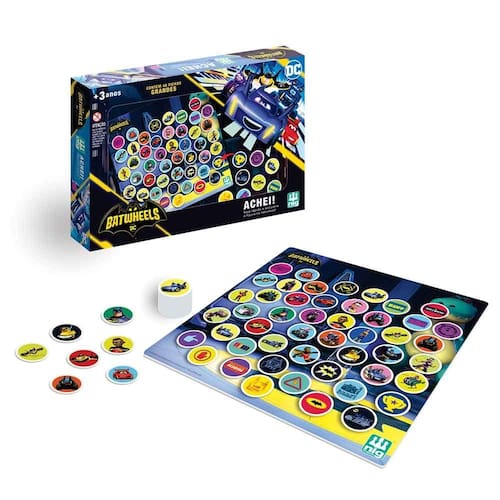 Jogo de Tabuleiro - Achei - Batwheels - Nig Brinquedos: Você é rápido? Consegue encontrar os seus personagens favoritos? Neste jogo divertido as crianças vão testar a memória, o reflexo e a rapidez na hora de procurar as figuras no tabuleiro. São 48 ilustrações incríveis de "Batwheels" para encantar os pequenos. Como jogar Achei Nig? 1) Objetivo: • Ser o mais rápido e encontrar o maior número de figuras no tabuleiro 1) Preparação: • Coloque o tabuleiro no centro da mesa para que todos vejam bem as figuras. Destaque as fichas da cartela e as coloque dentro do saco plástico. Decida quem será o líder da rodada. O líder não vai jogar nesta vez! 2) Jogando: • As crianças ficam em volta do tabuleiro. O líder tira uma figura de dentro do saco e mostra para todos os participantes. Quando o líder disser "Já" todos vão procurar a figura no tabuleiro. 3) Quem vence? • Aquele que encontrar em primeiro lugar ganha e recebe a ficha. Vence quem tiver o maior número de figuras Informações: • Produto: Jogo Achei Batwheels • Marca: Nig Brinquedos • Coleção: DC Batwheels • Tipo: Jogo de Tabuleiro Infantil • Categoria: Jogos e Tabuleiros • Subcategoria: Jogo de Tabuleiro • Objetivo: Ser o mais rápido e encontrar o maior número de figuras no tabuleiro • Participantes: para 02 a 06 jogadores • Conteúdo: - 01 tabuleiro - 48 fichas em cartão - 01 saco plástico • Recomendação: para crianças a partir de 04 anos de idade Especificações: • Referência: 0663 • Código de Barras: 7896200706636 • Embalagem (C x A x L): 35.5 x 24 x 5.5 cm • Embalagem (Peso): 0.315 kg • Composição / Material: Cartonado e plástico • Registro: 006161/2021 • Certificado: Órgãos Autorizados - OCP´S (Organismos de Certificação de Produtos) Aviso: • As imagens são meramente ilustrativas • Os pesos, tamanhos e medidas são aproximados • As cores e estampas dos produtos podem ter variações • As informações são de responsabilidade do fabricante ou fornecedor
