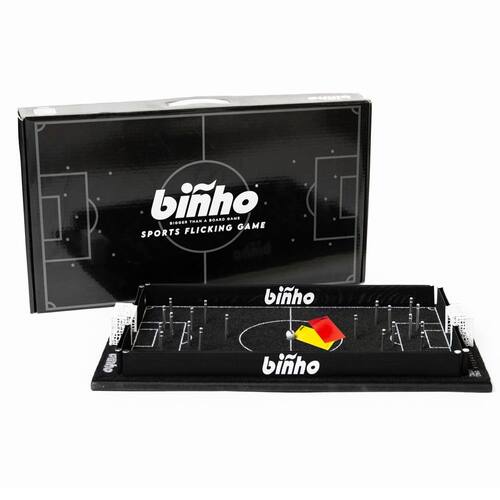 Traga a emoção dos esportes competitivos para sua mesa com o jogo de tabuleiro Binho. Este jogo rápido para 2 jogadores combina a emoção de deslizar os dedos com a estratégia de jogos clássicos como pinball e pebolim, perfeitos para jogadores de todas as idades. Rápido e fácil de configurar, o Binho Board permite que você comece a jogar em minutos. Basta encontrar uma superfície plana, montar suas peças de gol e prepare-se para jogar! O objetivo é ser o primeiro jogador a marcar 7 pontos enquanto defende seu gol dos chutes rápidos do seu oponente. A superfície de jogo suave garante que cada movimento seja preciso, tornando cada partida emocionante do início ao fim. O Binho Board Classic é um ótimo complemento para festas, reuniões de família, noites de jogos ou até mesmo uma pausa casual no escritório. Seu design portátil significa que você pode levar a diversão para qualquer lugar, seja no quintal, na praia ou na casa de um amigo. Onde quer que você vá, o tabuleiro Binho é uma maneira divertida de se conectar com amigos e familiares, este jogo certamente manterá todos entretidos. Deixe os bons momentos rolarem! - Jogo de tabuleiro clássico Binho – inspirado nos jogos tradicionais de apertar os dedos, este jogo de tabuleiro é um giro moderno do clássico futebol de papel, hóquei de bolhas e pebolim. Possui linhas de campo de impressão a laser e uma superfície de jogo tipo feltro (pense em mesa de sinuca, mas um pouco mais espessa) para garantir fotos mais retas e ritmo mais rápido do que as outras pranchas. - Jogue a qualquer hora, em qualquer lugar – O Binho Board é a vida da festa, seja com a família, amigos ou colegas de trabalho. Leve para festas, noites de jogos casuais ou desfrute de uma combinação amigável em casa. Você também pode levá-lo em viagens para diversão espontânea, tornando cada momento uma hora de jogo. - Jogabilidade fácil de aprender - Domine as regras em minutos com o panfleto de jogo incluído. Gire a bola para frente e para trás, seguindo onde ela pousa e tente ser o primeiro jogador a alcançar 7 pontos. É um jogo para toda a família — adultos, e todos os outros podem entrar e começar a competir. - Competição sem esforço – realce sua vantagem competitiva sem suar! Você pode jogar este jogo de tabuleiro sentado, em pé ou como quiser. Tudo o que você precisa é de uma superfície plana para começar a jogar! - Conjunto completo – Crie momentos memoráveis com nosso Binho Board. Cada conjunto vem com tudo o que você precisa: placa Binho de 56 x 33 x 7,6 cm, 2 bolas, 2 pinos de pontuação, 2 cartões vermelhos/amarelos, 2 gols brancos, 20 peças removíveis de metal de alumínio, 12 peças de barreira, 6 elásticos externos pretos (2 longos, 4 curtos), 1 panfleto de regras, bolsa de cordão Binho e 1 Binho penalty coco pol.