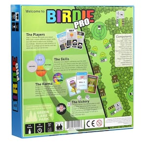 Experimente o Disc Golf como nunca antes com o BIRDIE Pro! BIRDIE Pro é um jogo de tabuleiro competitivo para um a seis jogadores que assumem os papéis de golfistas de disco para uma partida no campo. Escolha o seu jogador, desenvolva suas habilidades e faça tudo o que puder para fazer o Karma funcionar a seu favor. Jogue disco de golfe na mesa da sua cozinha e role para a vitória com o jogo de tabuleiro de golfe de disco número 1 em vendas! - Fácil de aprender – o jogo pode ser aprendido em menos de 15 minutos e aproveitado várias vezes, seja sua primeira vez no campo ou você é um profissional de golfe de disco. - JOGABILIDADE ESTRATÉGICA - Planeje como superar cuidadosamente os oponentes e atrapalhar seus planos. - Expansível – Expansões futuras aumentam a capacidade de reprodução com novos campos para jogar e dominar. - NOVO E MELHORADO - BIRDIE Pro se baseia no jogo de tabuleiro BIRDIE autêntico com novas mecânicas e regras refinadas. - Adequado para a família – Recomendado para maiores de 14 anos, o BIRDIE Pro é divertido para toda a família com um tempo médio de diversão de 90 minutos.