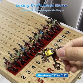 O grande jogo de tabuleiro de corrida de cavalos de 58 cm oferece uma experiência de corrida de cavalos emocionante e envolvente, perfeita para entusiastas de festas e jogos de azar. Este conjunto de jogos de cavalos de qualidade premium inclui 11 luxuosos cavalos numerados de metal, adicionando um toque de elegância às suas sessões de jogo. O tabuleiro de corrida de cavalo de madeira dobrável oferece uma superfície de jogo resistente e conveniente, garantindo durabilidade e fácil armazenamento. Com seu tamanho grande de 58 cm, este jogo de tabuleiro de cavalo permite que os jogadores mergulhem totalmente na emoção da corrida, criando uma atmosfera cativante para todos os participantes. Para determinar o resultado de cada corrida, dois conjuntos de dados estão incluídos, fornecendo um elemento justo e imprevisível para o jogo. Além disso, a inclusão de 2 caixas de cartas adiciona mais emoção e estratégia ao jogo, permitindo que os jogadores façam movimentos estratégicos e aumentem suas chances de vitória. Para aqueles que gostam da emoção do jogo, este jogo de corrida de cavalos vem com 80 fichas de pôquer, permitindo que os jogadores façam apostas e simulem a experiência autêntica das apostas em corridas de cavalos. Estes chips são projetados para fornecer um peso e sensação satisfatórios, melhorando a experiência geral de jogo. Se você está organizando uma festa ou organizando uma noite de jogo, este jogo de tabuleiro de corrida de cavalos certamente agradará a todos. Sua combinação de materiais premium, design elegante e jogabilidade envolvente o torna uma excelente escolha para jogadores casuais e experientes. Traga a emoção da pista de corrida para sua casa com este emocionante e divertido jogo de corrida de cavalos. - [Dois jogos em um] Experimente a emoção das corridas de cavalos e do jogo de disco com este versátil jogo de tabuleiro. Combinando uma jogabilidade clássica de corrida de cavalos com um jogo de estilingue de ritmo rápido, oferece horas de diversão em família para crianças e adultos. Afaste sua família das telas e se envolva neste jogo estratégico e emocionante - [Jogo de tabuleiro de corrida de cavalo de madeira de 53 polegadas] Feito de madeira de alta qualidade, este jogo de tabuleiro de corrida de cavalos de tamanho grande de 58 cm garante durabilidade e uma superfície de jogo mais suave. O processo atualizado dá ao tabuleiro de jogo de cavalo spray de cor de camada dupla, tornando-o à prova d'água e resistente à corrosão. Com seu design luxuoso e 80 fichas de pôquer incluídas, desfrute do amor por corridas de cavalos, jogos de azar e bebidas durante festas de derby - [Design dobrável conveniente] Projetado para facilitar o transporte e armazenamento, este jogo de tabuleiro de corrida de cavalos se dobra perfeitamente em uma caixa de madeira que também serve como tabuleiro de jogo. Leve-o para a casa do seu amigo, acampamentos ou viagens sem se preocupar em perder nenhum acessório. Desfrute de horas de diversão e uma experiência de jogo duradoura onde quer que você vá - [Cavalos de metal numerados requintados] Admire o artesanato delicado dos cavalos de metal numerados incluídos neste conjunto de jogos de cavalos. Com cores brilhantes e atraentes no cavalo, esses cavalos trazem uma experiência de corrida realista. A superfície lisa polida sem pontos ásperos aumenta sua aparência requintada, lembrando obras de arte. Torça pelo seu cavalo numerado favorito e mergulhe na emoção das corridas de cavalos - [Experiência emocionante de corrida de cavalos para todas as ocasiões] Perfeito para reuniões com amigos, vizinhos e colegas de trabalho, este jogo de corrida de cavalos arranhado acomoda de 2 a 11 jogadores. Seja uma noite de jogo em família, festa de aniversário, viagem de acampamento ou noite de bebida de amigos, este jogo emocionante e vantagem competitiva cativará todos. Procurando um presente único e emocionante para entusiastas de corridas de cavalos? Não procure mais – este jogo de tabuleiro de corrida de cavalos é a escolha ideal com seu belo design e embalagem requintada