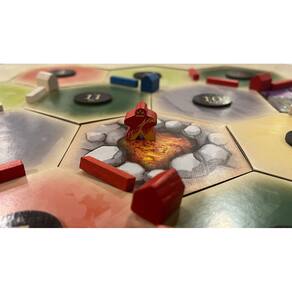 Um Golem Elemental foi invocado e está causando estragos em toda a ilha. Você pode lançar proteções mágicas suficientes para salvar seus assentamentos? Quando um 7 é lançado, o Golem Elemental é invocado e começa seu caminho de destruição. O jogador que acertou o 7 colocará o Golem Elemental em um hexágono terrestre de sua escolha. Qualquer feitiço com um Golem Elemental não produz mais recursos e os jogadores criados com base nesse hexágono perdem 1 recurso para o Elemental, devolvendo 1 recurso de sua escolha para o banco. Uma vez que o Golem Elemental é colocado, ele imediatamente entra em fúria. - Feito nos EUA - Feitiço de Invocação Elemental personalizado - Golem Elemental Meeple de madeira - Cartão de bônus Elemental Wizard - Tokens de proteção mágica