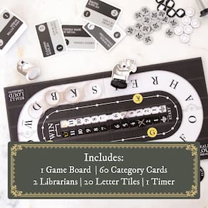 - Conjunto completo de jogos: este jogo de tabuleiro inclui tudo o que você precisa: 1 tabuleiro de jogo, 60 cartas de categoria, 2 bibliotecários, 20 peças de letras, 14 fichas, 2 marcadores de pontuação, 1 corrente e 1 temporizador de areia. Perfeito para jogos ao ar livre para reuniões de família e noites divertidas.