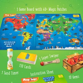 - Bem-vindo ao mundo da busca oculta – Envolva-se em uma corrida épica contra o tempo em uma emocionante missão mundial enquanto testa sua inteligência e memória para identificar e capturar rapidamente tesouros escondidos como países, monumentos, animais e muito mais, tornando-o um jogo de tabuleiro educativo perfeito para crianças.