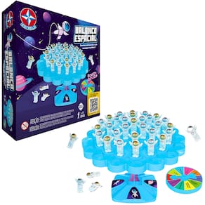 Descrição do produto : Prepare-se para uma aventura cosmica com Balanco Espacial! Cada jogador deve comecar escolhendo uma cor de astronauta azul ou dourado, girar a roleta e seguir a acao indicada que pode variar entre colocar varios astronautas ate pular a jogada. Caso algum astronauta caia da base durante a sua jogada, deve-se pega-lo para si. O jogo acaba quando um dos jogadores conseguir colocar todos os astronautas de sua cor na base e estiver sem nenhum astronauta em maos. DICA: ao colocar os astronautas na base bamba, priorize os astronautas da sua cor, escolhida no inicio do jogo. : Detalhes técnicos : Marca: Estrela : Referência: 1301657000006 : Idade recomendada: 4 : Componentes : : 1 suporte, 1 haste, 1 base bamba, 48 astronautas 24 azuis e 24 dourados, 1 roleta de desafios e 1 saco plastico. Possui Luzes: Não : Possui Sons: Não : Dimensões aproximadas da embalagem: 17 x 17 x 5 cm (A x L x C) : Ean: 7896027563689 :