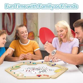 Jokers and Marbles Jogo de cartas Pegs and Jokers - Jogabilidade divertida: nossas regras de jogo de tabuleiro de mármore são fáceis de aprender, divertidas para jovens e idosos e proporcionam entretenimento sem fim. O conjunto de jogo de tabuleiro Jokers and Marbles inclui 6 tabuleiros de jogo interligados, 3 baralhos de baralho, 30 bolas de gude coloridas, instruções de jogo e 2 sacos de armazenamento para tabuleiros e bolinhas de gude - Alta qualidade: o jogo de tabuleiro Pegs and Jokers é feito com placas de madeira maciça resistentes, e evitamos estritamente o uso de tabuleiros de plástico baratos. Nossas placas são fáceis de montar com atualizações que não se movimentam. Quando o jogo começar, você precisa colocar os 6 tabuleiros juntos completamente e, em seguida, escolher sua cor favorita para jogar de acordo com o número de jogadores - Essencial para a família: este é o jogo de tabuleiro essencial para a noite de jogos em família! Quer sejam noites de jogos, feriados ou reuniões sociais casuais, traga este jogo de tabuleiro de bolinhas e coringas para infundir o evento com risadas e competições amigáveis. Prepare-se para embarcar nesta emocionante competição de mármore - Adequado para todas as ocasiões: com suas regras acessíveis e jogabilidade cativante, este jogo de coringas e bolinhas de gude é o companheiro perfeito para várias ocasiões. Nosso jogo de tabuleiro vem com duas lindas bolsas de armazenamento de tecido, perfeitas para levar em viagens, aventuras de acampamento ou festas. Aproveite a emoção deste jogo viciante a qualquer hora, em qualquer lugar - Melhor presente: o jogo é embalado em uma caixa colorida, o que o torna o presente perfeito para o entusiasta de jogos que você está procurando. A satisfação do cliente é a nossa motivação, se você receber o produto e se sentir insatisfeito, , certamente o ajudaremos a resolver o problema
