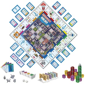 Jogo de tabuleiro Monopoly Builder para crianças e adultos, jogos de estratégia, jogos de tabuleiro para a família, para crianças a partir de 8 anos, 2 a 4 jogadores - É um jogo clássico de monopólio diferente com este jogo de tabuleiro de estratégia onde os jogadores compram propriedades e empilham fisicamente edifícios com os blocos do construtor - JOGOS DIVERTIDOS PARA A FAMÍLIA E JOGOS PARA CRIANÇAS: jogadores a partir de 8 anos podem desfrutar de competir contra familiares e amigos enquanto pretendem acumular mais pontos para ganhar. É um dos melhores presentes para a família que qualquer pessoa vai adorar. - Jogos de estratégia: os jogadores coletam e trocam recursos para construir suas torres; a competição e as interações sociais aumentam à medida que os jogadores jogam um jogo de empilhamento e empilham suas torres cada vez mais altas - Divertido jogo familiar para jogar: os jogadores não estão apenas comprando propriedades neste jogo de tabuleiro Monopoly -- eles estão construindo na Ilha Monopoly - Ganhe tudo: depois que a cobertura foi construída, o jogador com mais pontos ganha o Monopoly Builder Game.
